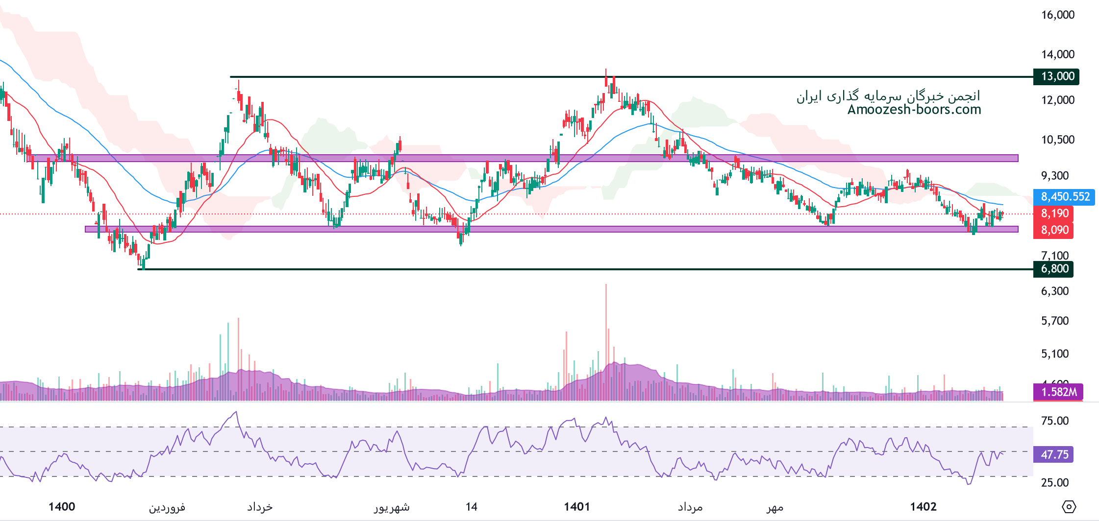 در صورت متعادل شدن جو بازار قیمت پتانسیل برگشت داشته که در این صورت مقاومت های مرقام به ترتیب 10000 و 13000 ریال در نظر گرفته خواهند شد.