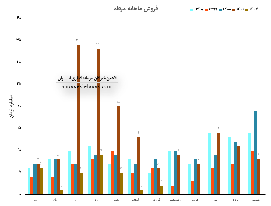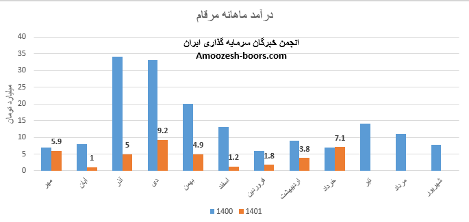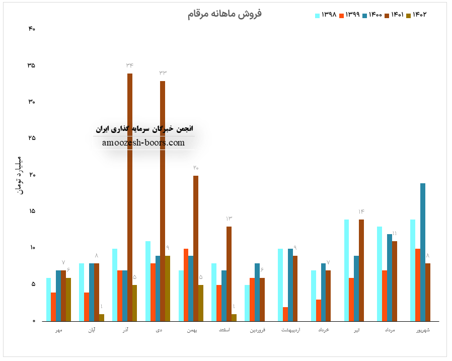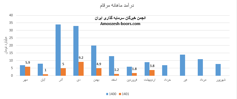 نماد مرقام (شرکت ایران ارقام) در فروردین ماه 1402 حدود مبلغ 2 میلیارد تومان درآمد داشته که این میزان در مقایسه با ماه گذشته 100% رشد و همچنین در مقایسه با مدت مشابه سال گذشته 67% افت پیدا کرده است. لازم به ذکر است مبلغ حدود 18 میلیارد تومان درآمد تحقق یافته صورتحساب نشده به دلیل عدم تکمیل مستندات و ابلاغ قرارداد از سوی کارفرما تا پایان دوره اخیر شناسایی نشده است .
