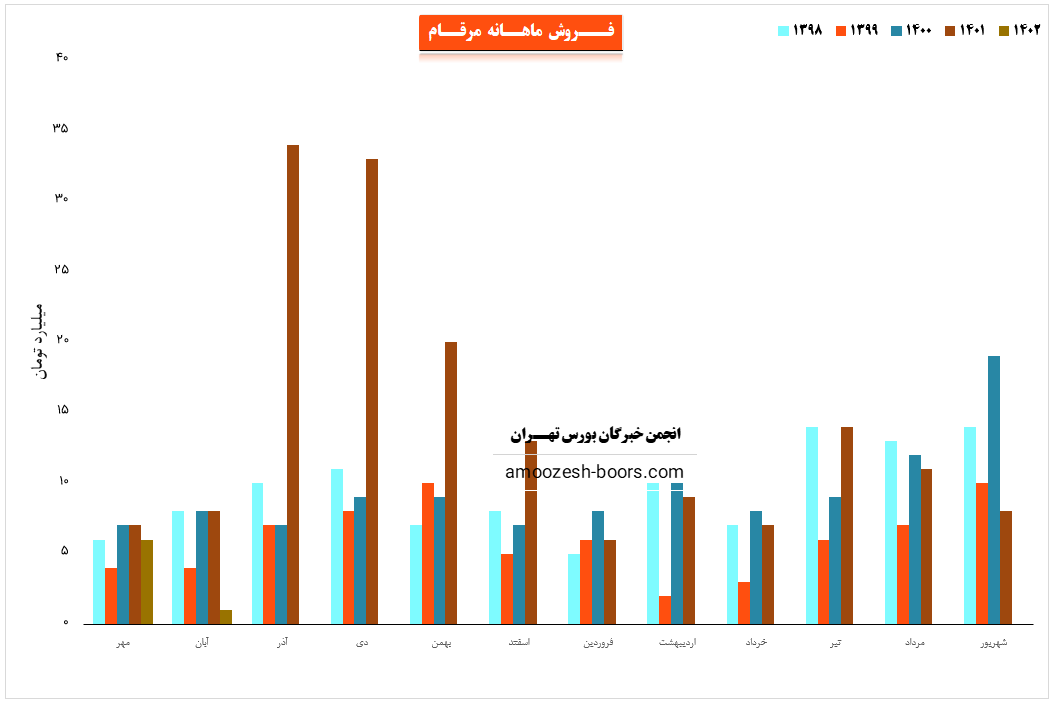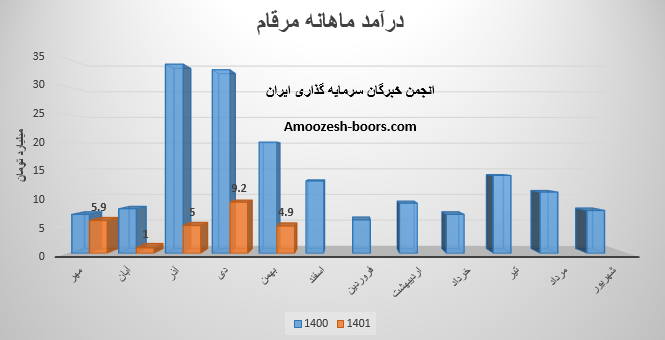 نماد مرقام (شرکت ایران ارقام) در آذر ماه ۱۴۰1 حدود مبلغ 5 میلیارد تومان درآمد داشته که این میزان در مقایسه با ماه گذشته 400% رشد و همچنین در مقایسه با مدت مشابه سال گذشته 85% کاهش درآمد پیدا کرده است.