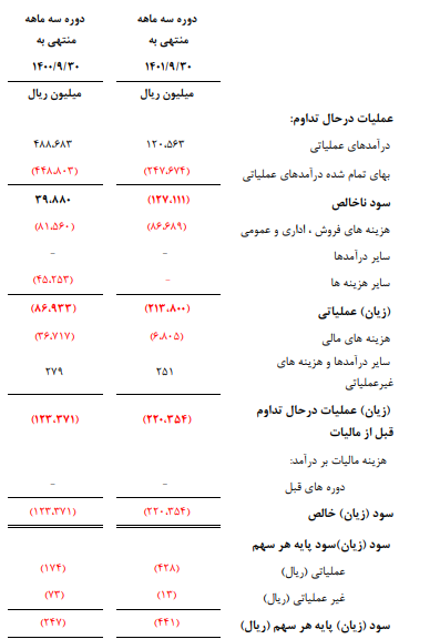 نماد مرقام در دوره 3 ماهه به ازای هر سهم 441 ریال زیان محقق نموده که نسبت به مدت مشابه رشد 39 درصدی داشته، درآمد های عملیاتی مرقام در دوره مورد گزارش کاهش 75 درصدی، زیان عملیاتی رشد 146 درصدی و هزینه های مالی با کاهش 81 درصدی رو به رو بوده است.