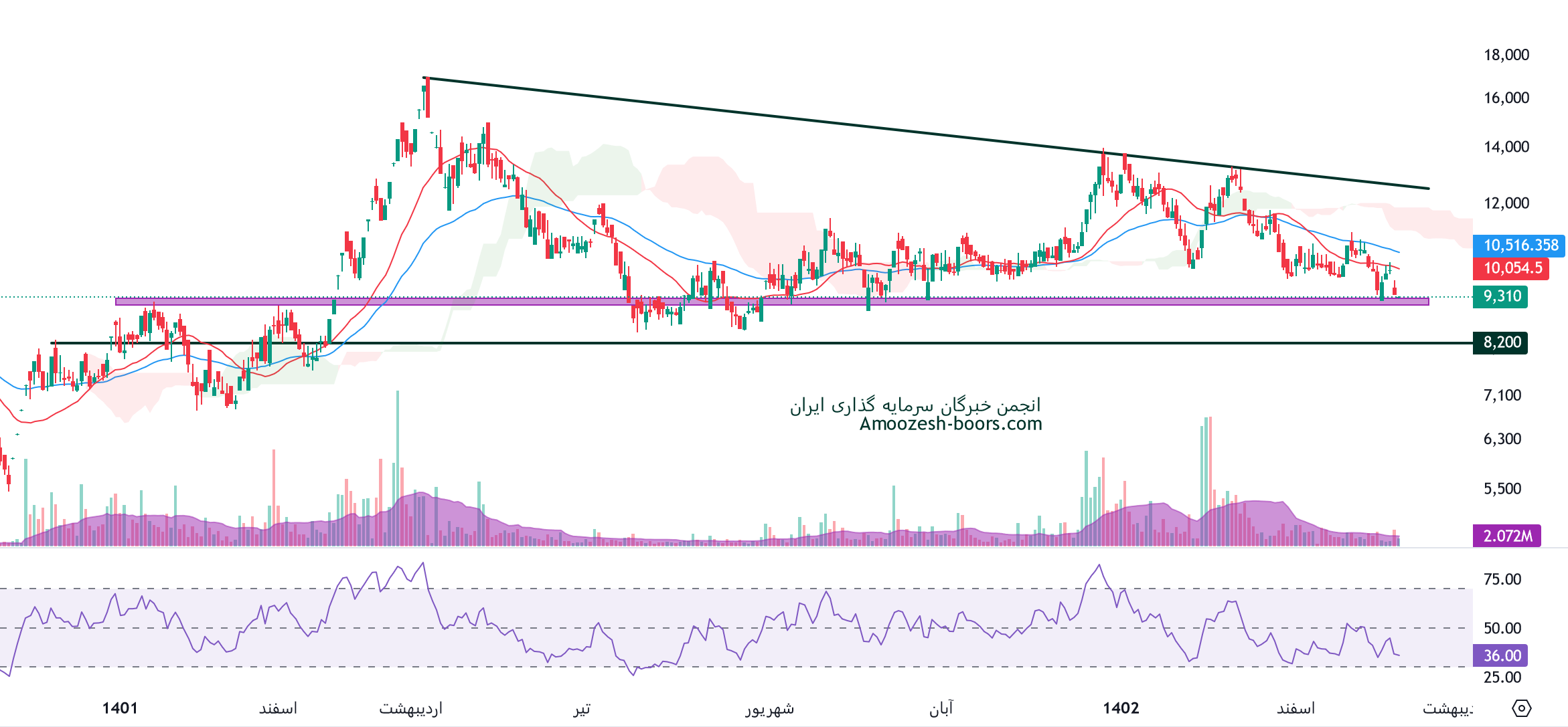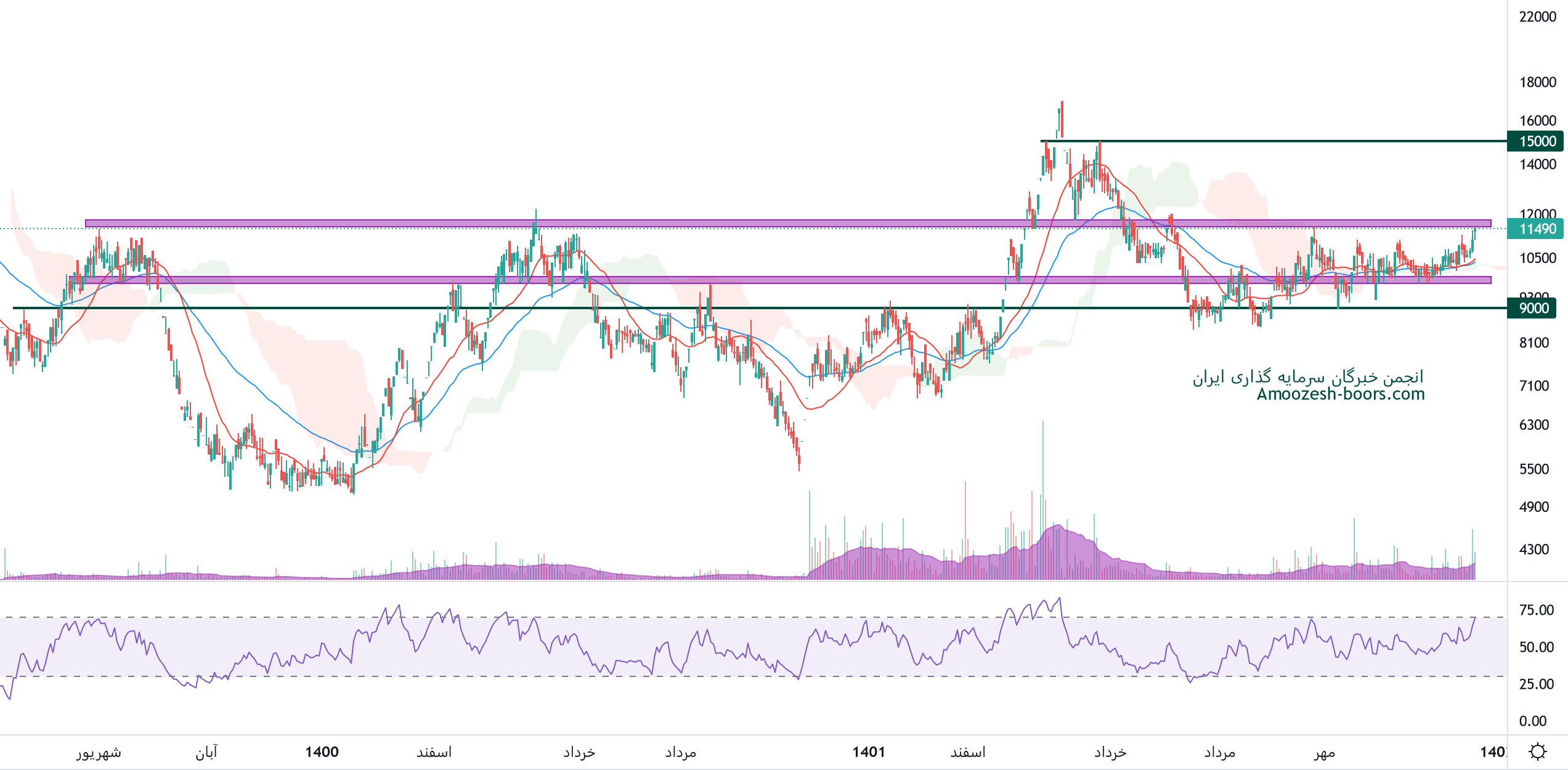 در صورت متعادل شدن جو بازار قیمت پتانسیل برگشت داشته که در این صورت مقاومت های مفاخر به ترتیب 11000 و 12500 ریال در نظر گرفته خواهند شد.