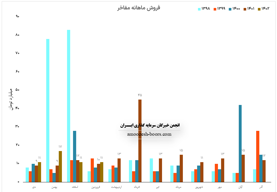 نماد مفاخر در عملکرد ماهانه منتهی به اردیبهشت ماه سال 1402 به 18.4 میلیارد تومان دست یافته است، سهم مفاخر در پنجمین ماه از سال مالی رشد 70 درصدی درآمد نسبت به ماه گذشته، 42 درصدی درآمد نسبت به مدت مشابه و افزایش 48 درصدی نسبت به متوسط ماهانه داشته است، در تحلیل بنیادی توسعه فناوری اطلاعات خوارزمی ( سهم مفاخر ) در میابیم که مجموع عملکرد پنج ماهه در مقایسه با مدت مشابه رشد 28 درصدی داشته و طی این مدت 38% از کل درآمد سال قبل پوشش داده شده است.