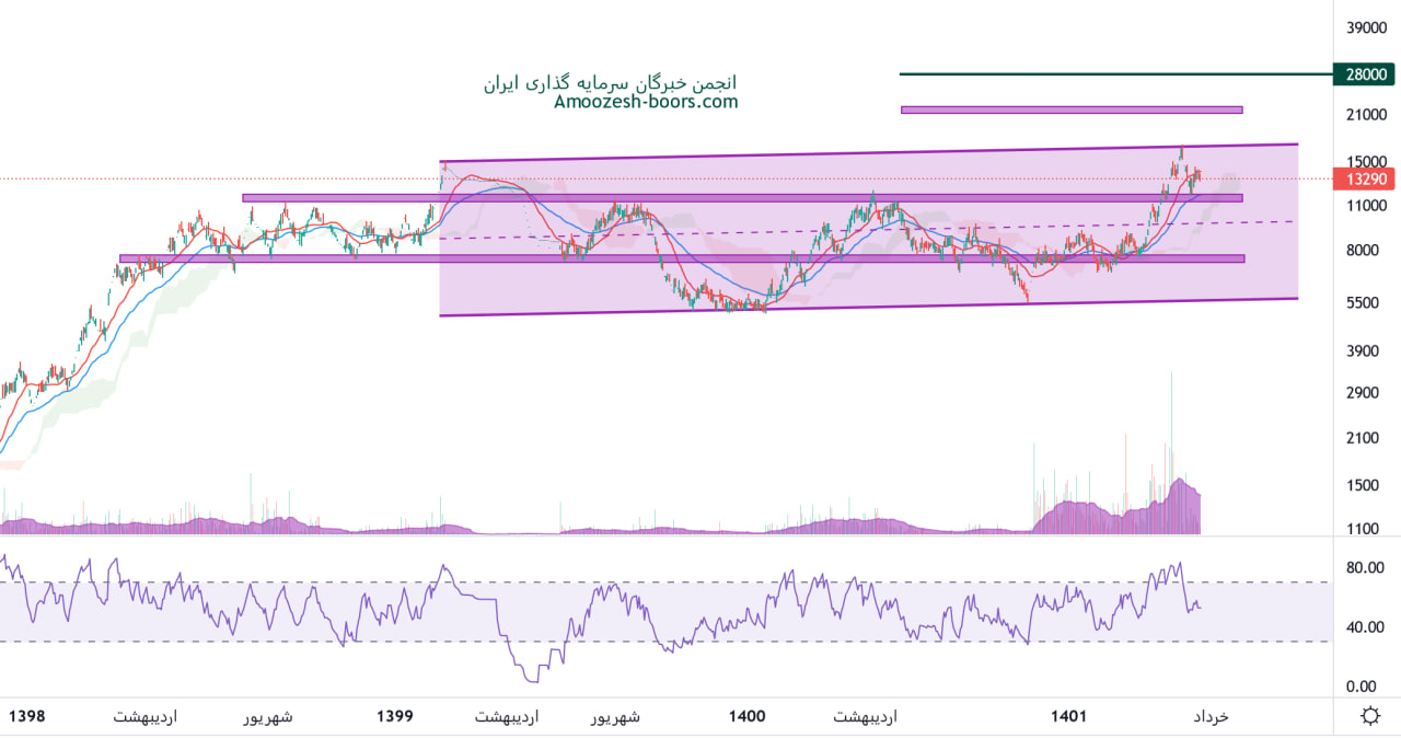 نماد مفاخر خود را به مقاومت سقف کانال صعودی در محدوده 16000 ریال رساند و به این ناحیه واکنش منفی نشان داد، منتها فعلا محدوده مقاومت 11000 ریال مانع از اصلاح بیشتر این سهم شده است، در صورت تثبیت روی این محدوده حمایتی، مقاومت های بعدی سهم مفاخر محدوده های 20000 و 28000 ریال خواهند بود، همچنین در صورت از دست رفتن محدوده حمایتی ذکر شده، اصلاح قیمت تا 10000 ریال و بعد از آن 7500 ریال ادامه دار خواهد بود.