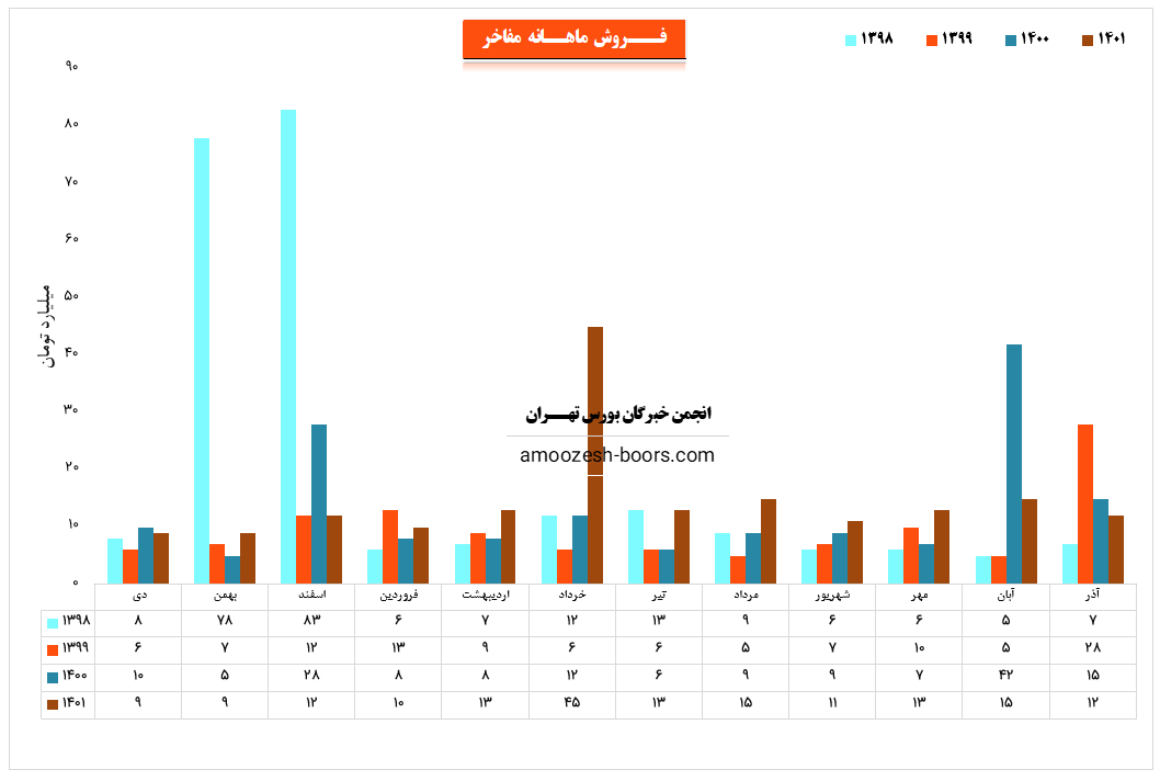 نماد مفاخر (شرکت توسعه فناوری اطلاعات خوارزمی) در آذر ماه ۱۴۰1 حدود مبلغ 12 میلیارد تومان درآمد داشته که این میزان در مقایسه با ماه گذشته و همچنین در مقایسه با مدت مشابه سال گذشته 20% کاهش پیدا کرده است.