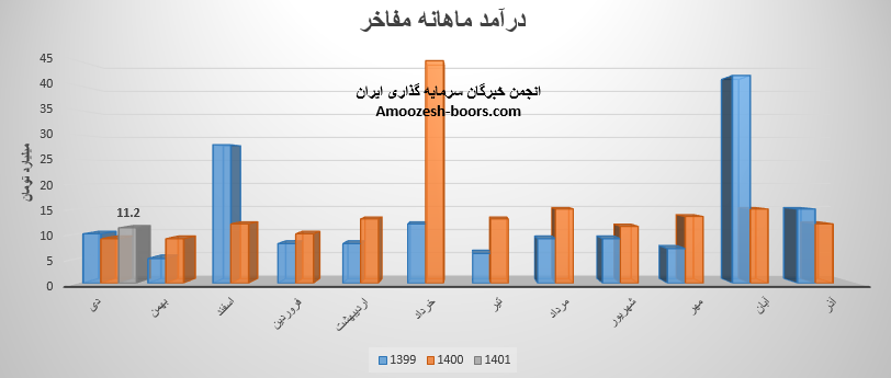 مجموع درآمد سهم مفاخر طی عملکرد 10ماهه سال مالی نسبت به مدت مشابه سال قبل 21% رشد داشته است.