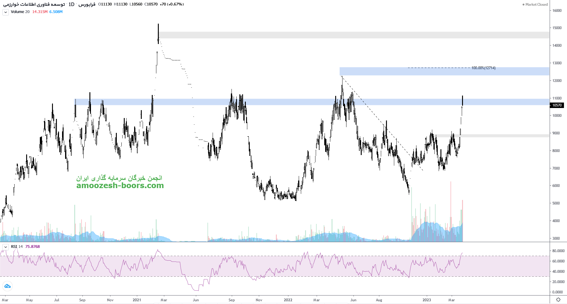 قیمت سهم مفاخر پس از شکست مقاومت مهم ناحیه ۷۳۰ تومان اکنون مقاومت های مهم ناحیه ۱۱۰۰ تومان و در صورت شکست مقاومت ناحیه ۱۲۵۰ تومان را پیش روی خود دارد. همچنین در صورت اصلاح ناحیه مهم ۷۴۰ تومان می تواند سد راه قیمت از اصلاح بیشتر شود.