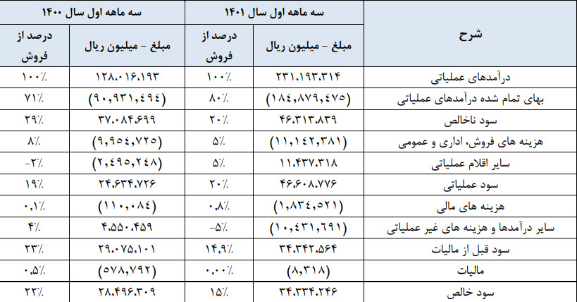 درآمد عملیاتی به میزان 81 درصد در مبلغ فروش افزایش داشته است که عمدتاٌ ناشی از افزایش در نرخ فروش نسبت به دوره مشابه سال قبل بوده است.