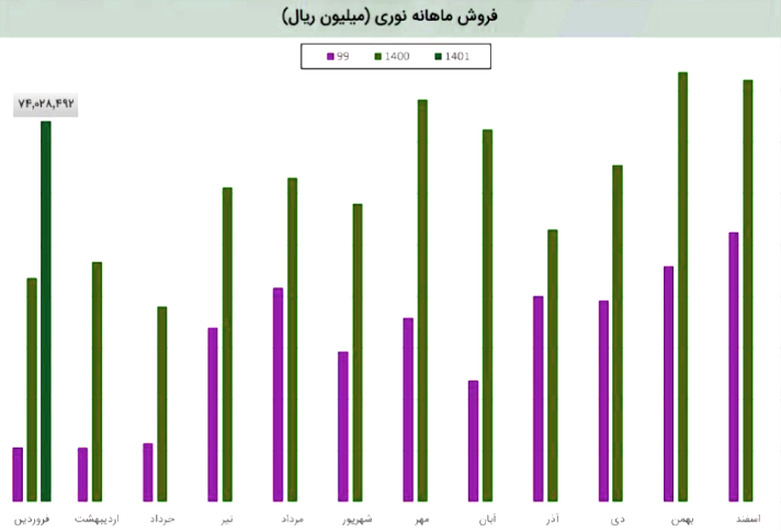فروش سهم نوری: 51311 میلیارد تومان که نسبت به دوره مشابه گذشته 114% افزایش یافته است.
