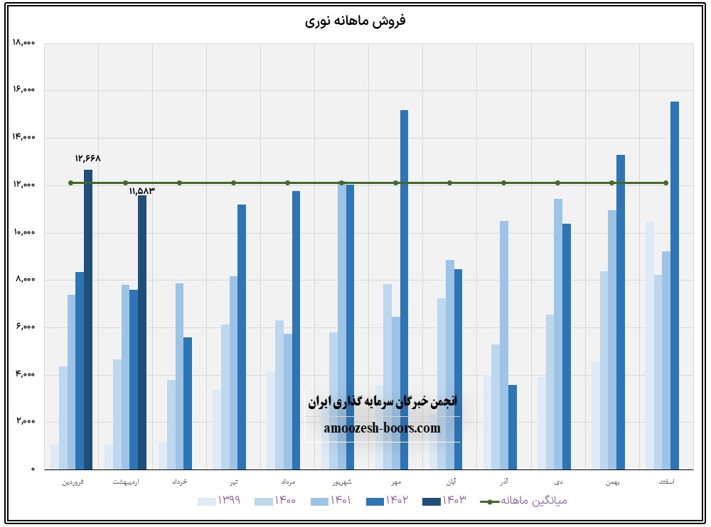 همچنین سهم نوری با ثبت فروش بیش از ۲۴۰۰۰ میلیارد تومان در دو ماهه ابتدایی سال مالی خود توانست حدود بیش از ۱۵ درصد از پیش بینی فروش سالانه خود را محقق سازد.