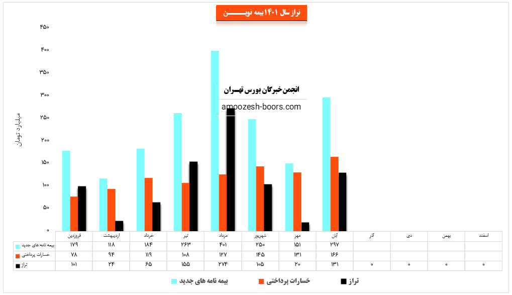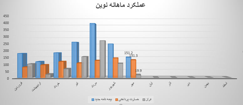همچنین نماد نوین در آبان ماه مبلغ 166 میلیارد تومان به بیمه نامه های خود خسارت پرداخت کرده که این میزان با افزایش 27 درصدی نسبت به ماه گذشته روبرو شده و لذا با توجه به آمار مذکور تراز نماد نوین با 555% افزایش در مقایسه با ماه گذشته به 131 میلیارد تومان رسیده است.