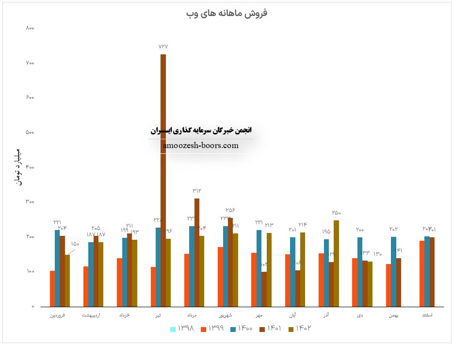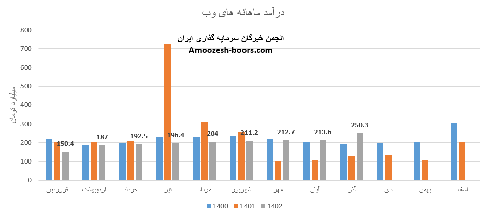 فروش آذر ماه سال 1402 سهم های وب 250.3 میلیارد تومان گزارش شده است، تغییرات درآمدی های وب به شرح زیر میباشد: