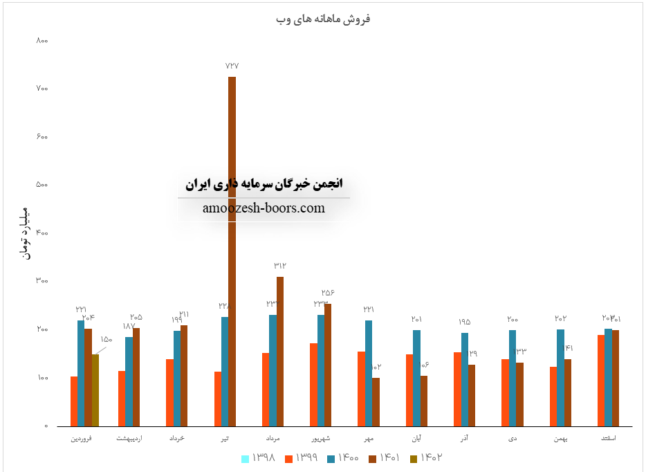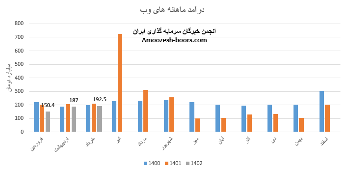 نماد های وب در عملکرد اردیبهشت ماه سال 1402 به درآمدی حدود 187 میلیارد تومان دست یافته است، که در مقایسه با ماه گذشته 24% رشد و نسبت به مدت مشابه افت 9 درصدی داشته است، بر اساس تحلیل بنیادی شرکت داده گستر عصر نوین ( سهم های وب ) مجموع عملکرد دو ماهه در مقایسه با مدت مشابه افت 18 درصدی داشته و طی این مدت 13% از کل درآمد سال قبل پوشش داده شده است و از بودجه سال گذشته عقب تر میباشد، همده درآمد های وب از طریق خدمات عمده فروشی پروانه FWA محقق شده که نسبت به ماه قبل افزایش 25 درصدی داشته است. براساس افشای اطلاعات با اهمیت های وب از شناسایی سود 62 تومان به ازای هر سهم خبر داده شده است که به دلیل فروش تجهیزات و منفعت زیر مجموعه ها برای پیشبرد پروژه فیبر نوری بوده است .