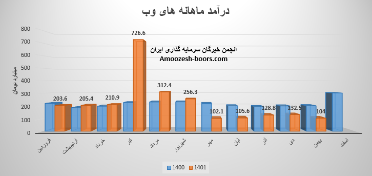 تداوم روند کاهشی در درآمد ماهانه های وب مشاهده شده و اخیرا با افت جدی درآمد مواجه بوده است، به طوری که در بهمن ماه به میزان 104 میلیارد تومان درآمدی شناسایی شده که کاهش 22 درصدی نسبت به ماه گذشته و کاهش 56 درصدی نسبت به متوسط ماهانه و نیز کاهش 49 درصدی نسبت به مدت مشابه داشته است، درآمد حاصل از فروش تجهیزات مشترکین سهم 50 درصدی از فروش ماهانه را به خود اختصاص داده است، درآمد از این محل نسبت به ماه گذشته رشد 22 درصدی داشته است.