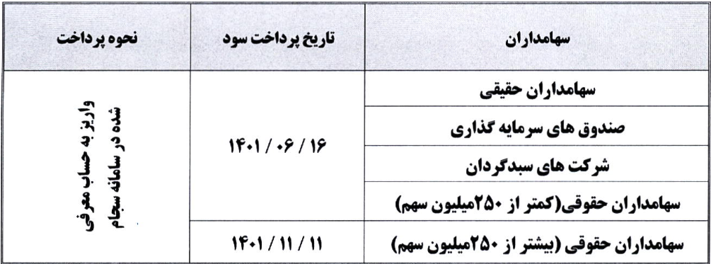 شرکت فولاد هرمزگان جنوب پرداخت سود سهامداران محترمی که در تاریخ مجمع عمومی عادی سالیانه مورخ ۱۴۰۱/۰۳/۲۵ سهامدار این شرکت بوده اند را به شرح ذیل اعلام می دارد: