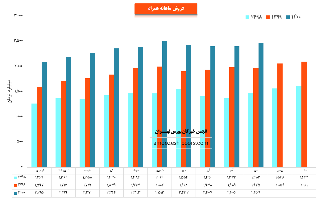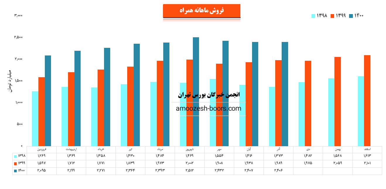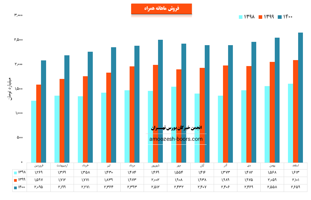 نماد همراه در اسفند ماه 1400 حدود مبلغ 2659 میلیارد تومان درآمد داشته که این میزان نسبت به ماه گذشته 4% و همچنین نسبت به مدت مشابه سال گذشته 27% رشد پیدا کرده است
