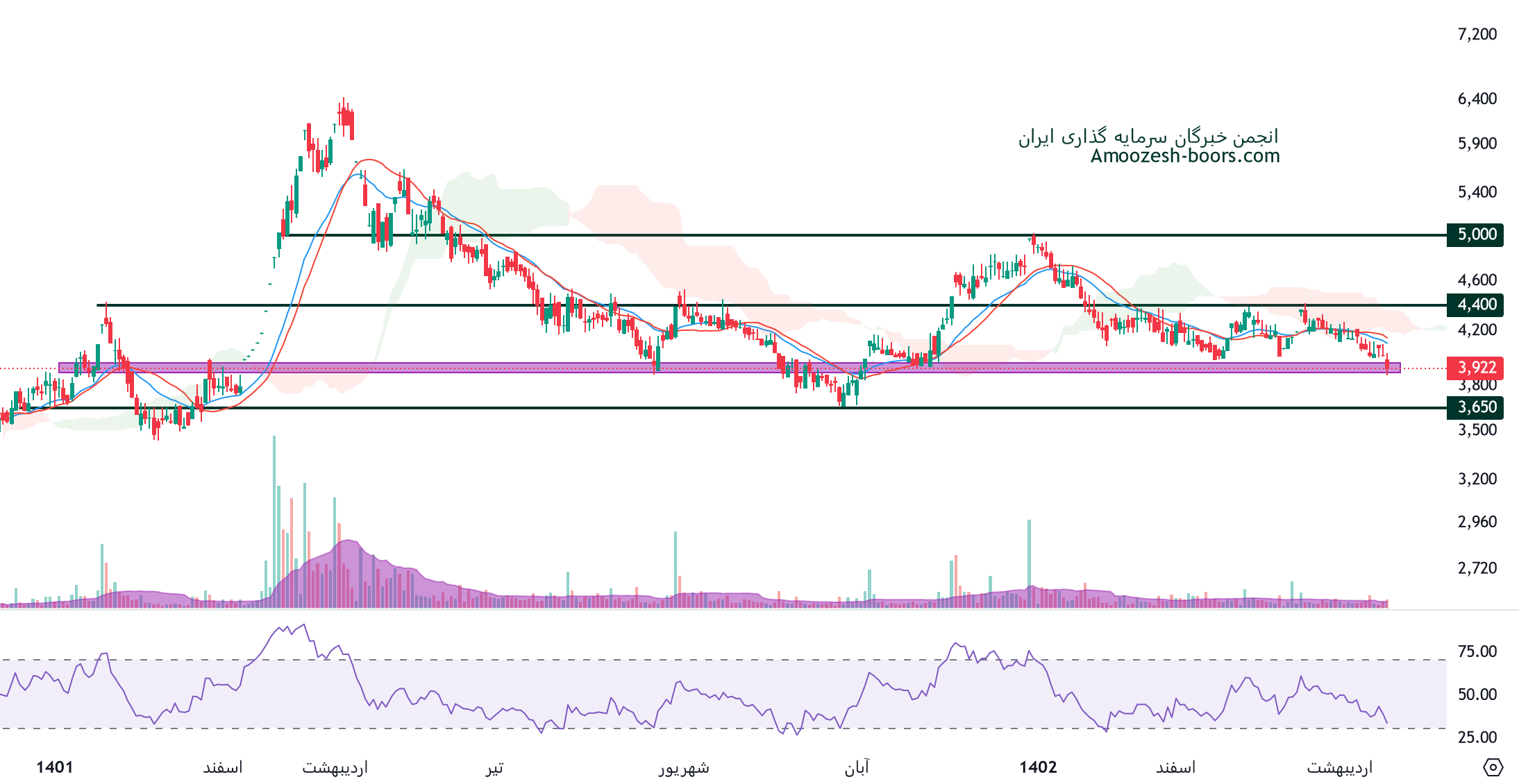 تحلیل تکنیکال و حمایت مقاومت سهم خاور