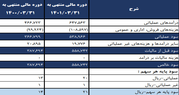عملکرد مالی شرکت در مقایسه با مدت مشابه مطابق با جدول زیر است :