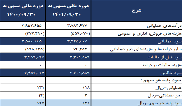 EPS وبانک در دوره نه ماهه ۱۲۱ ریال گزارش شده که نسبت به دوره مشابه افت 5 درصدی را تجربه نموده است . همچنین درآمد های عملاتی افت 4 درصدی ، سود عملاتی افت 10 درصدی و هزینه های عملیاتی رشد 50 درصدی داشته است .باید در نظر داشت با توجه به ماهیت فعالیت شرکت سرمايه گذاري گروه توسعه ملي بخش اعظم درآمد حاصل در این سرفصل پس از برگزاری مجامع سرمایه گذاری ها و قبل از تصویب صورتهای مالی این شرکت یعنی در 4 ماهه اول سال1402 محقق و گزارش میگردد.