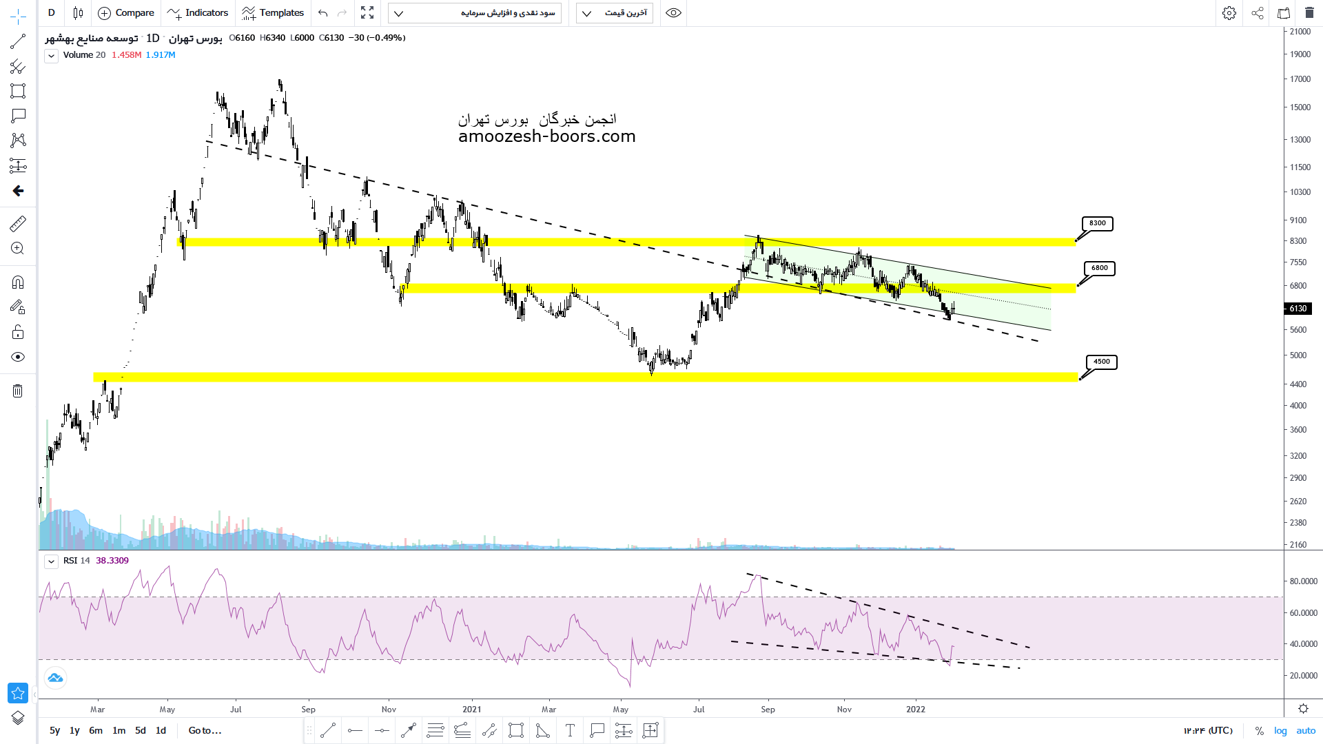 اما درصورت عدم حمایت و ریزش بیشتر محوده حمایتی 450 تومان می تواند مقصد این موج نزولی باشد.