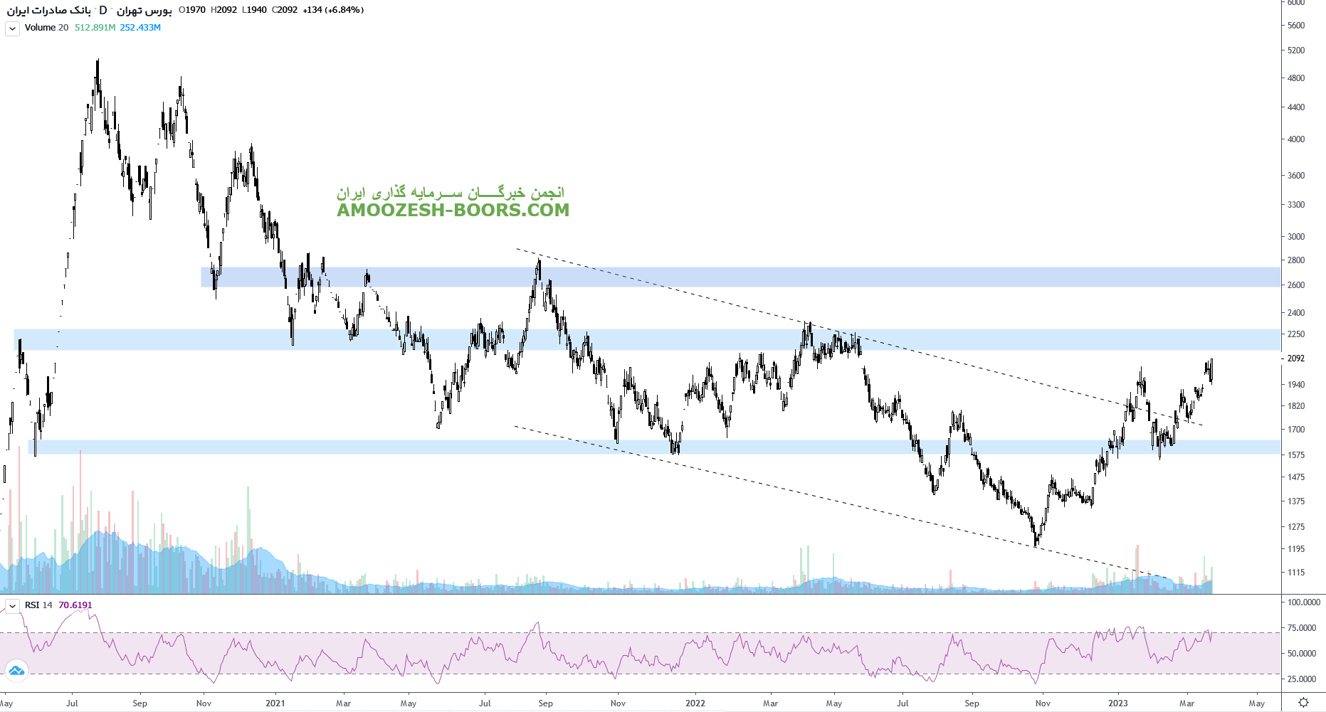نماد وبصادر موفق به شکست محدوده مقاومتی 2300 ریال شده، در صورت تثبیت قیمت در این سطح این نماد دارای ریسک پایین تکنیکالی میباشد، و محدوده های مقاومتی بعدی 2800 رایل ارزیابی میگردد، همچنین در صورت از دست رفتن سطخ 2300 ریال، اولین حمایت سهم وبصادر 2050 ریال در نظر گرفته خواهد شد.
