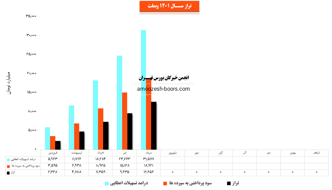 نماد وبملت (بانک ملت) با نماد وبملت در مرداد ماه سال 1401 حدود مبلغ 31577 میلیارد تومان از محل تسهیلات اعطایی به افراد درآمد داشته که این میزان در مقایسه با ماه گذشته 28% افزایش پیدا کرده است.