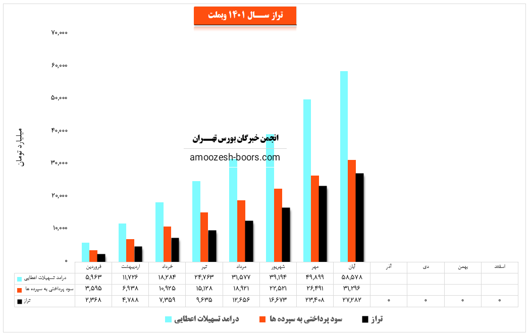 نماد وبملت (بانک ملت) در آبان ماه سال 1401 حدود مبلغ 58578 میلیارد تومان از محل تسهیلات اعطایی به افراد درآمد داشته که این میزان در مقایسه با ماه گذشته 17% افزایش پیدا کرده است.