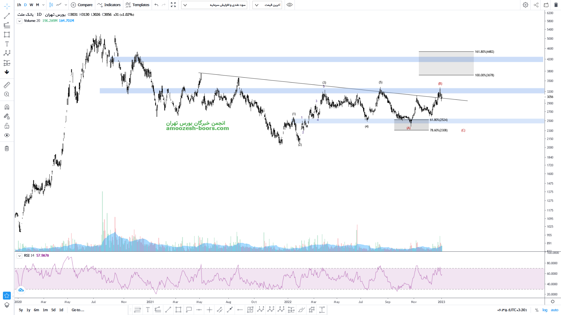 نماد وبملت (بانک ملت) درگیر حمایت خود در محدوده 2500 ریال میباشد، در صورتی که قیمت سهم وبملت موفق به تثبیت در این محدوده شود، حرکت سهم تا 2800 ریال محتمل خواهد بود، همچنین در صورت از دست رفتن این حمایت، حمایت بعدی وبملت 2100 ریال خواهد بود.