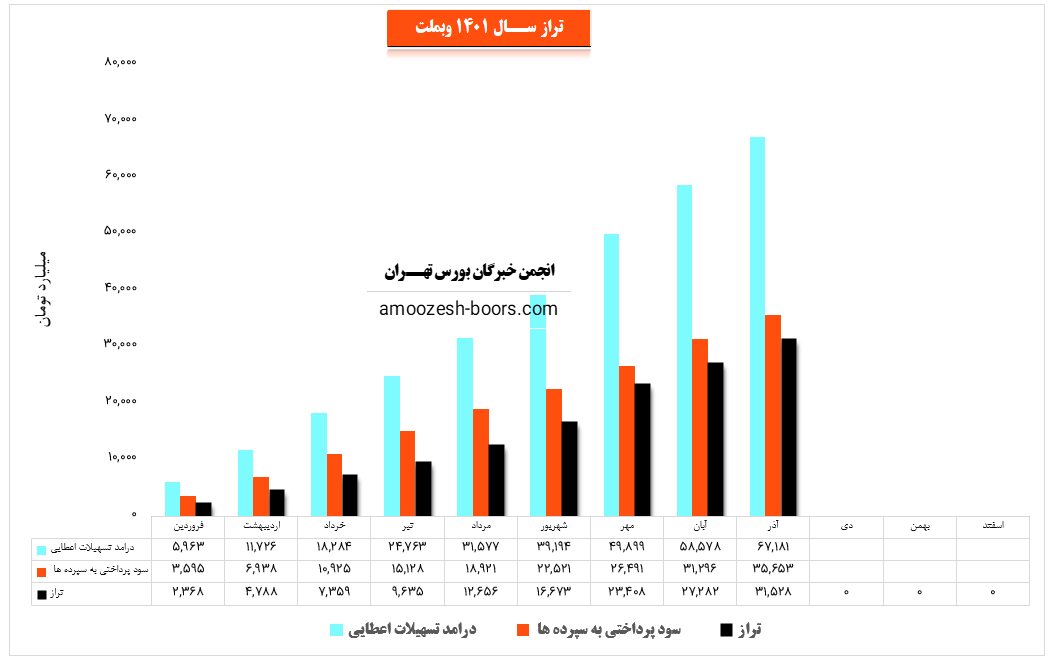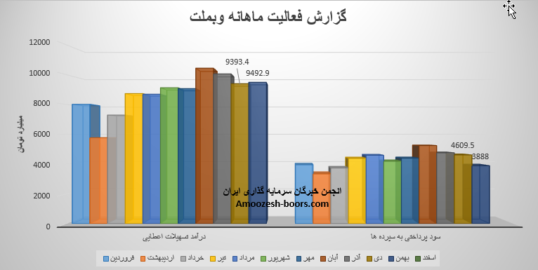 نماد وبملت در این ماه از درآمد های کسب شده خود حدود بیش از 4493 میلیارد تومان به سپرده های خود سود پرداخت کرده که منجر به ثبت تراز مثبت 5950 میلیارد تومانی در اسفند ماه شده است.