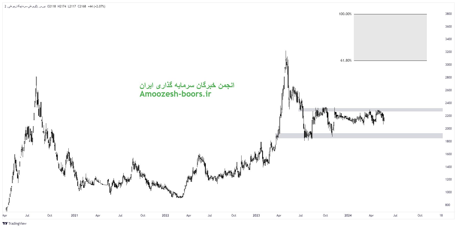 سهم وبوعلی با برخورد چند باره به مقاومت ناحیه ۲۳۰۰ ریال واکنش منفی از خود نشان داده است لذا در صورت ایجاد تقاضا در کلیت بازار و عبور از مقاومت ناحیه ۲۳۰۰ ریال، حرکت سهم وبوعلی تا مقاومتهای نواحی ۳۰۰۰ ریال و ۳۸۰۰ ریال در میان مدت ادامه خواهد داشت. اما در صورت برگشت مجدد، نزدیکترین حمایت سهم وبوعلی ناحیه ۱۸۰۰ ریال تعیین شده است.