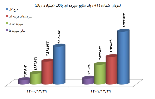 نماد وتجارت در عملکرد سالانه با افزایش 50 درصدی درآمد تسهیلات اعطائی همراه بوده است، به تناسب رشد درآمد هزینه پرداختی سود سپرده های بانک تجارت نیز 32% رشد داشته است، همچنین جمع درآمد های عملیاتی سهم وتجارت 89%، سود خالص 309% و EPS وتجارت با رشد خوب 308 درصدی همراه بوده است، تراز عملیاتی وتجارت در سال 1401 به 23 همت رسیده که رشد 96 درصدی نسبت به سال قبل دارد، روند منابع سپرده ای بانک و مطالبات بانک تجارت به شرح نمودار ( شاره یک و دو ) زیر میباشد.