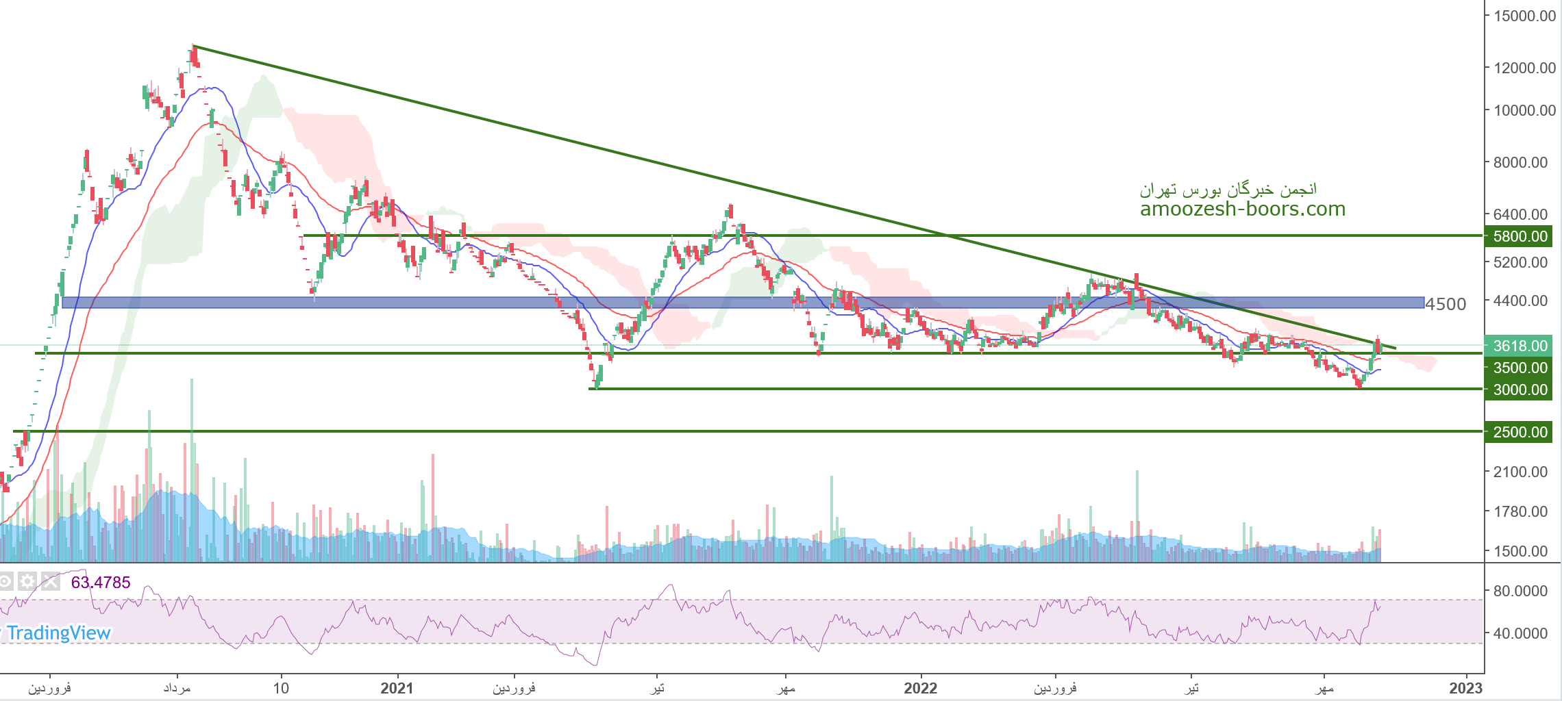 قیمت سهم وخارزم در حال حاضر مقاومت 3550 ریال را دارا میباشد، در صورت عبور از این مقاومت، حرکت سهم تا 4500 ریال محتمل خواهد بود، همچنین در صورت ورود سهم به فاز اصلاحی، اولین حمایت سهم وخارزم 3000 ریال در نظر گرفته خواهد شد.