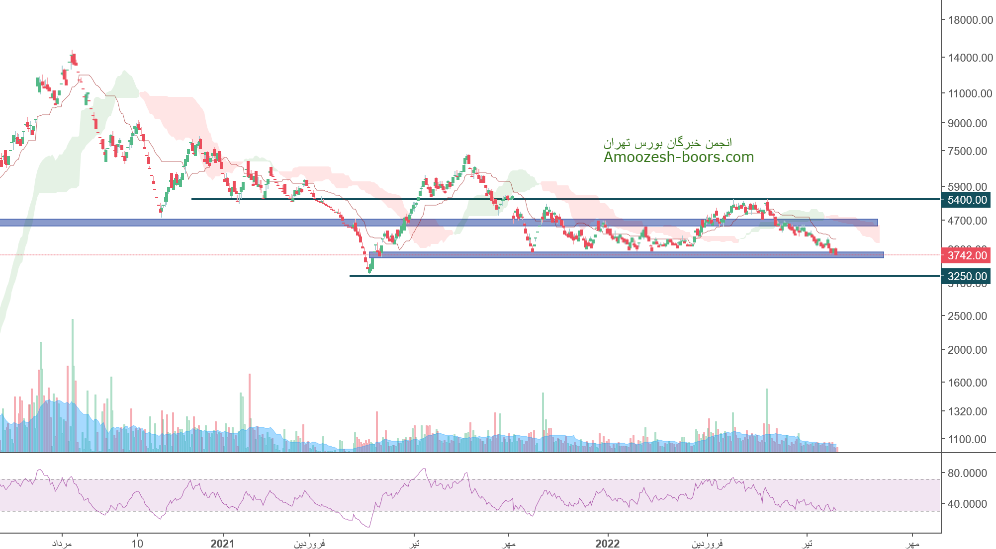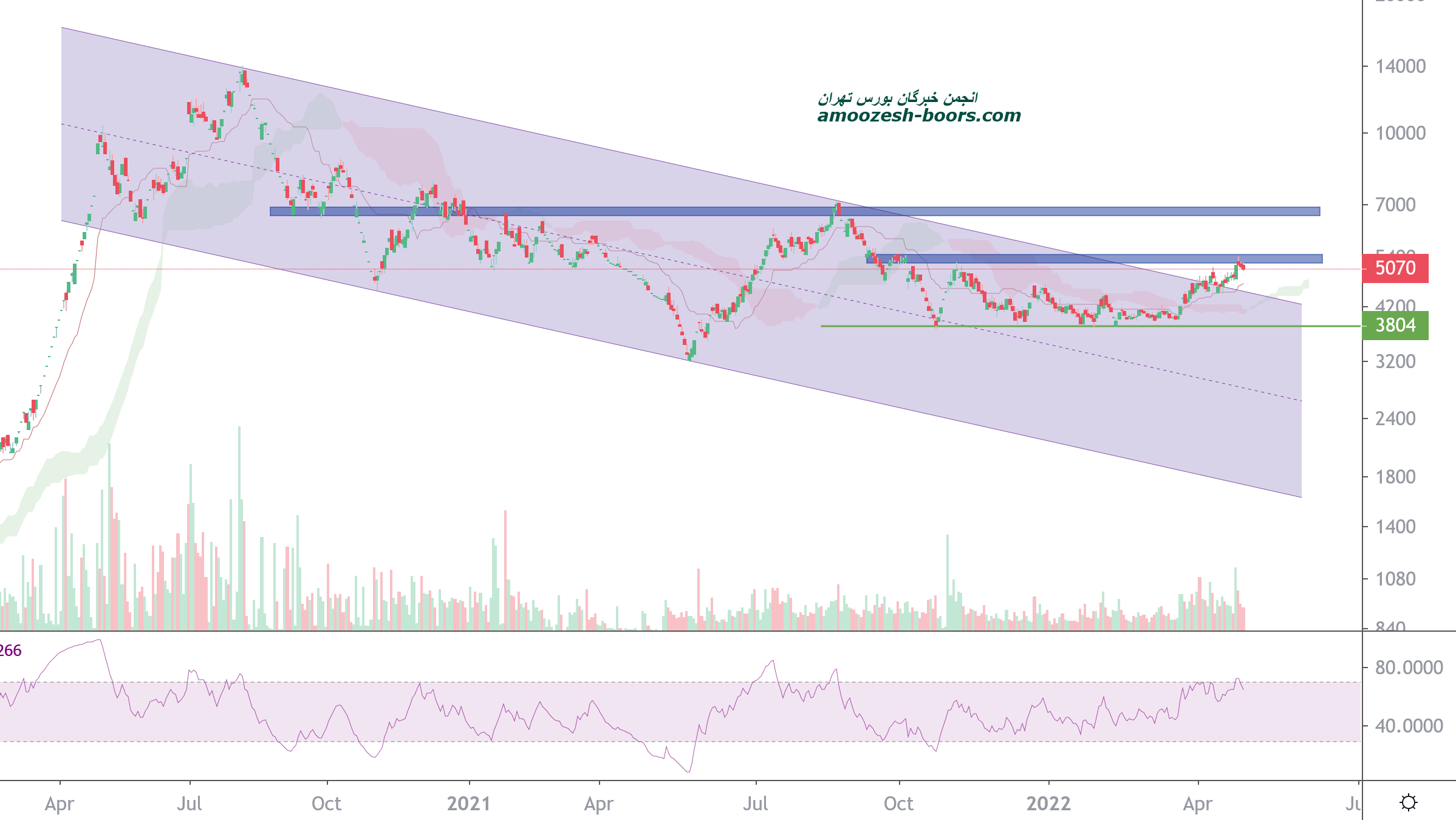 قیمت سهم وخارزم در حال حاضر حمایت 3650 ریال را دارا میباشد، در صورت تثبیت قیمت، حرکت سهم تا 4750 ریال دور از ذهن نخواهد بود، همچنین در صورت از دست رفتن این حمایت، حمایت بعدی نماد وخارزم 3250 ریال در نظر گرفته خواهد شد که در این صورت حد ضرر فعال میگردد.