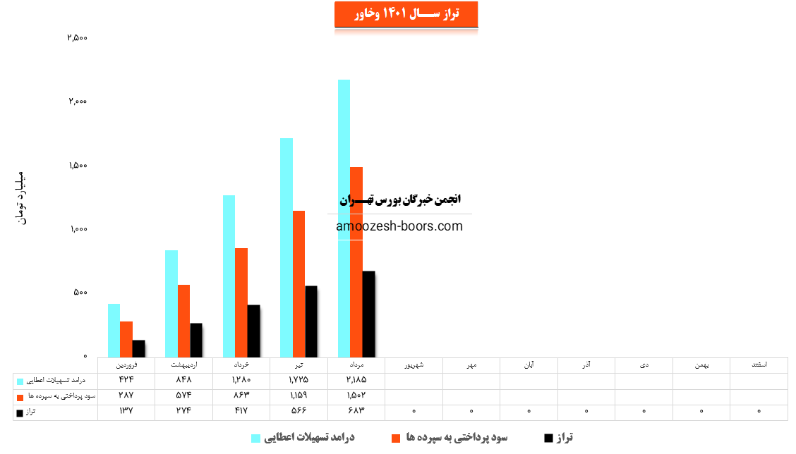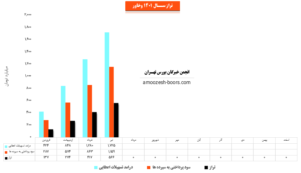 سهم وخاور (بانک خاورمیانه) در تیر ماه سال 1401 حدود مبلغ 1725 میلیارد تومان از محل تسهیلات اعطایی به افراد درآمد داشته که این میزان در مقایسه با ماه گذشته 35% افزایش پیدا کرده است.
