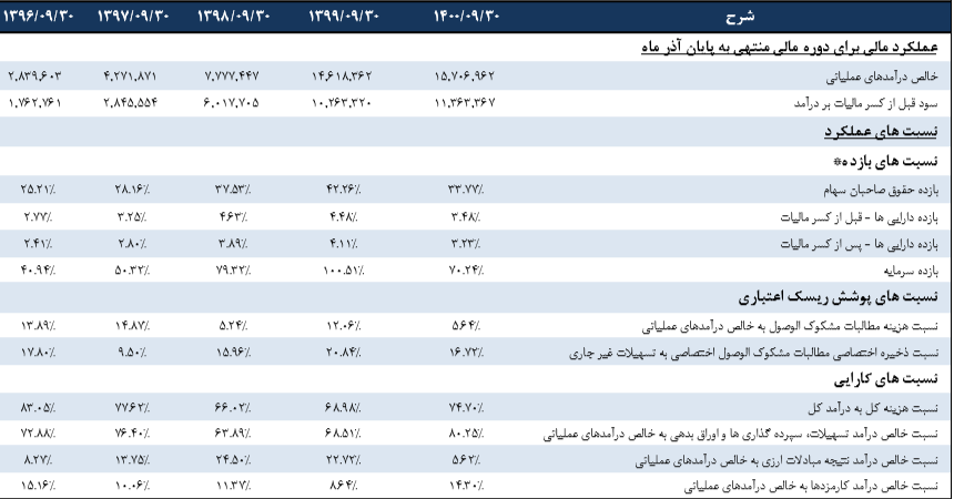 بانک در این دوره تراز مثبت 48 میلیارد تومان (15%) را ثبت کرده است.