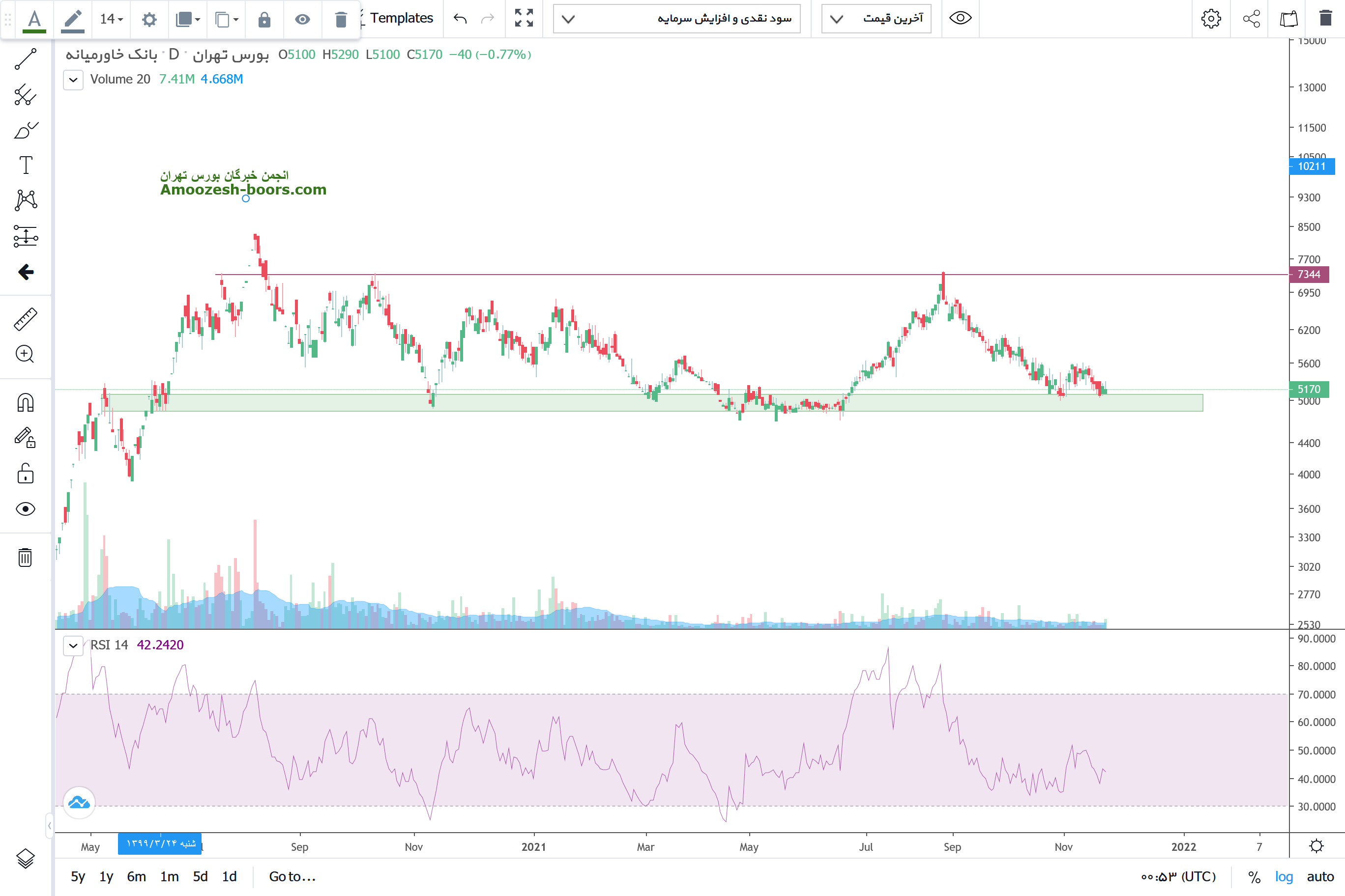 این سهم فاندامنتالی در حل حاضر در منطقه حمایت روانی عدد رند 5000 قرار داشته و در صورت تثبیت و ایجاد سیگنال ورود میتوان این سهم رو زیر نظر داشت در صورت شکست حمایت 4700 حد ضرر فعال خواهد شد در صورت تثبیت مقاومت های 5700 و. 7400 به ترتیب بر سر راه سهم قرار خواهند داشت