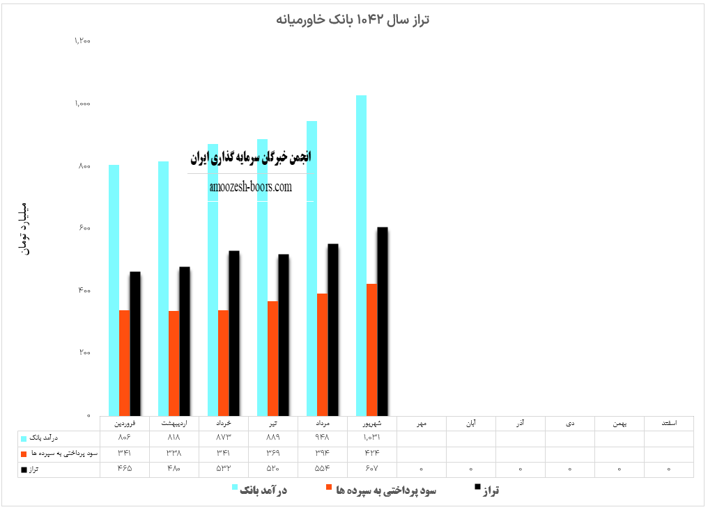 سهم وخاور (بانک خاورمیانه) در شهریور ماه سال 1402 حدود 1031 میلیارد تومان درآمد داشته که در مقایسه با ماه گذشته حدود 9% رشد پیدا کرده است. نماد وخاور در این ماه از درآمد های کسب شده خود حدود بیش از 424 میلیارد تومان به سپرده های خود سود پرداخت کرده که در مقایسه با ماه گذشته حدود 8% رشد پیدا کرده است. با توجه به آمار مذکور تراز بانک خاورمیانه (نماد وخاور) در شهریور ماه با 10% افزایش نسبت به ماه گذشته مثبت 607 میلیارد تومان به ثبت رسیده است.
