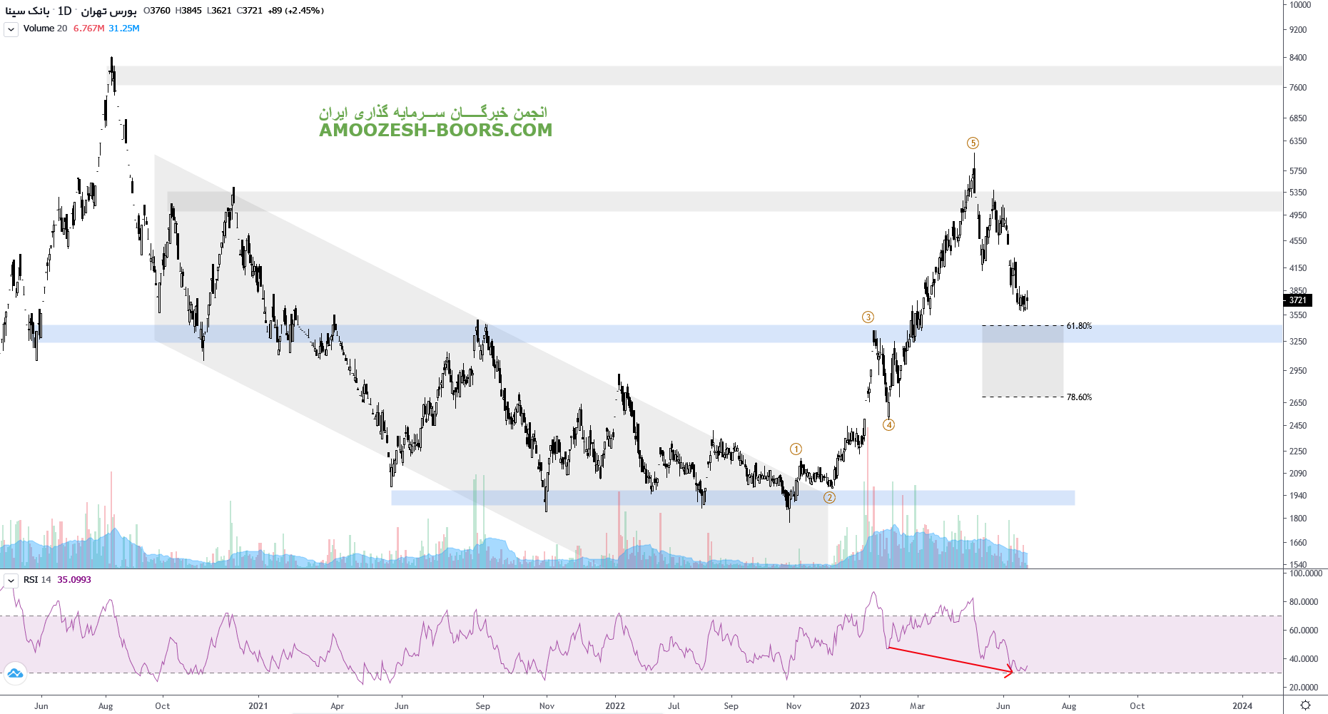 تحلیل تکنیکال سهم وسینا نشان میدهد که قیمت در محدوده حمایتی 3500 ریال میباشد، در صورت شکست این سطح، حمایت بعدی سهم وسینا 3150 ریال و در صورت ایجاد فشار تقاضا مقاومت وسینا 4000 ریال در نظر گرفته میشوند.
