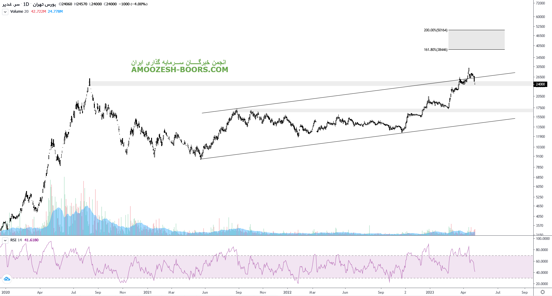 نماد وغدیر در حال حاضر به محدوده حمایتی میدلاین کانال در قیمت 16000 ریال میباشد، در صورت تثبیت قیمت حرکت سهم تا 25000 ریال ادامه دار خواهد شد، همچنین در صورت از دست رفتن محدوده حمایتی ذکر شده، حمایت بعدی 13500 ریال در نظر گرفته خواهد شد.