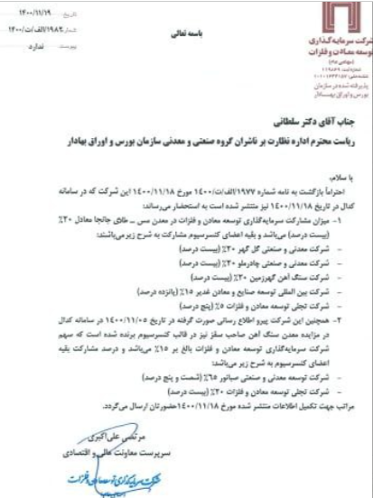همچنین ومعادن در خصوص طرح های توسعه آتی شرکت اطلاعیه زیر را افشا نموده است .