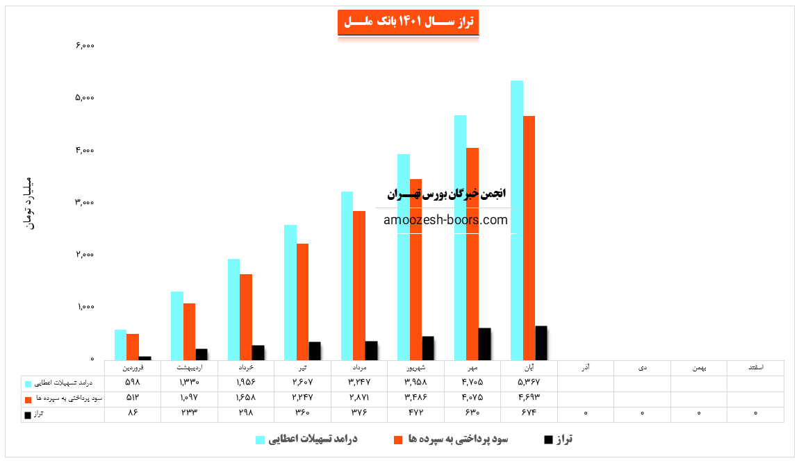 همچنین نماد وملل در آبان ماه مبلغ 4693 میلیارد تومان به سپردههای خود سود پرداخت کرده که این میزان با افزایش 15 درصدی نسبت به ماه گذشته روبرو شده و لذا با توجه به آمار مذکور تراز وملل با 7% رشد نسبت به ماه گذشته به 674 میلیارد تومان رسیده است.
