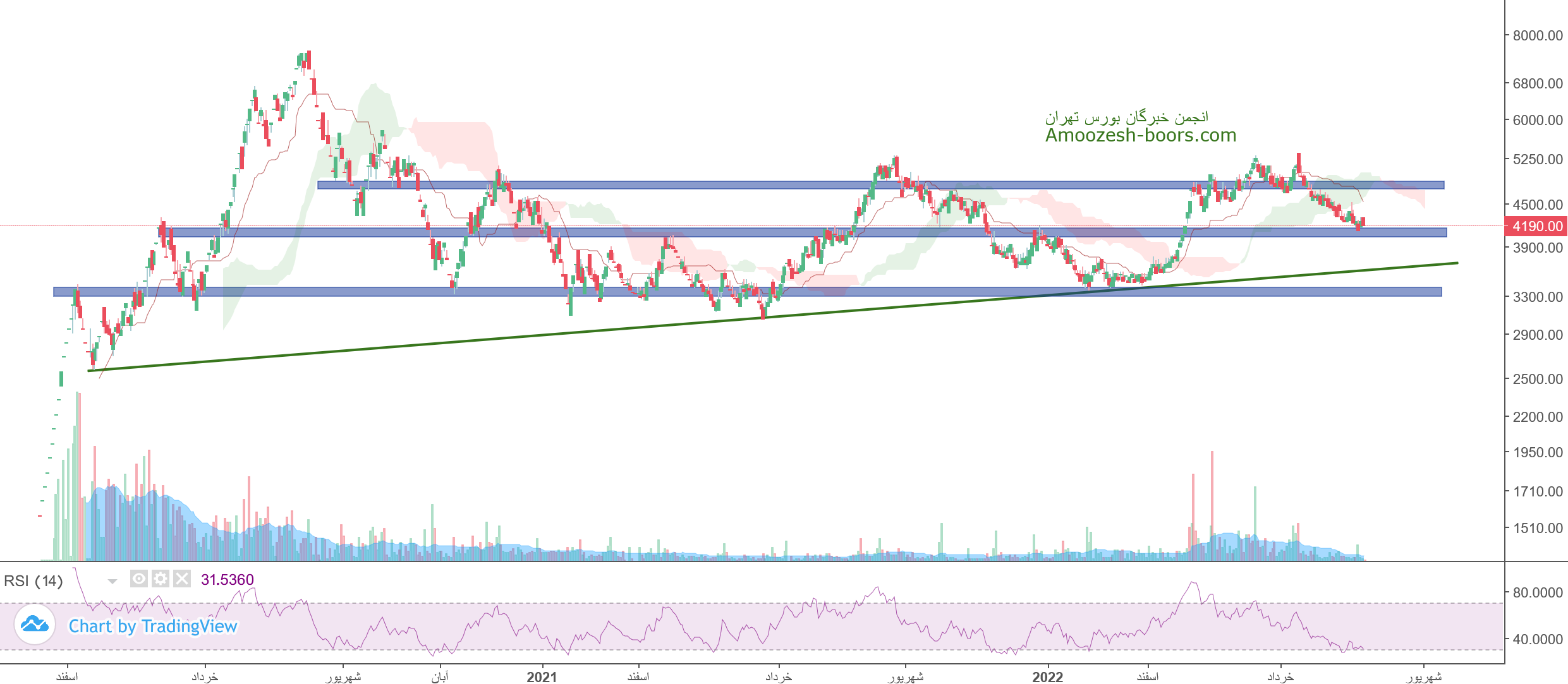 ومهان در حال حاضر حمایت 4000 ریال را دارا میباشد، در صورت تثبیت قیمت، حرکت سهم تا 4800 ریال دور از ذهن نخواهد بود، همچنین در صورت از دست رفتن این حمایت، حمایت بعدی 3700 ریال در نظر گرفته خواهد شد که در این صورت حد ضرر فعال میگردد.