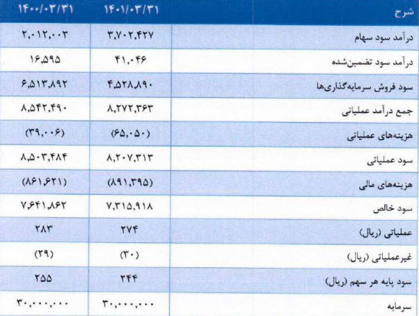 درآمد سود سهام 85 درصد افزایش و سود فروش سرمایه گذاری های کاهش 30 درصدی راشته است .