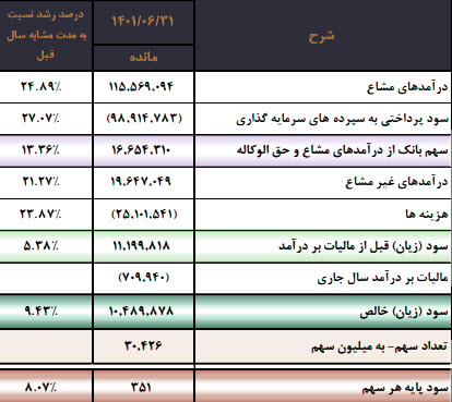 | تاثیر دلار | افزایش نرخ دلار منجر به شناسایی سود در بخش تسعیر ارز میشود |