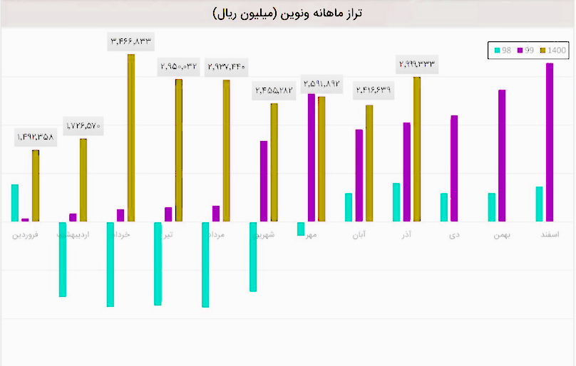 تراز ونوین در ابان مثبت بود درآمد تحقق یافته تسهیلات اعطایی ۸,۴۸ درصد بیشتر از متوسط درآمد تحققیافته تسهیلات اعطایی طی ۷ ماه گذشته بوده است.