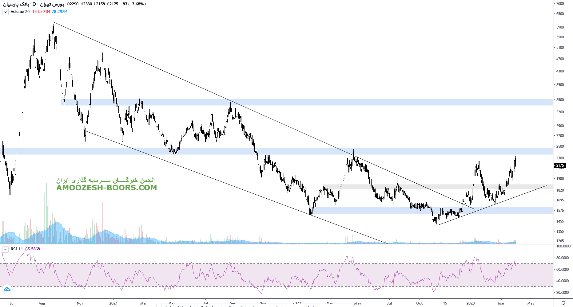 نماد وپارس در مسر اصلاح خود، به حمایت 1740 ریال رسیده، در صورت تثبیت قیمت، حرکت سهم تا 2000 ریال محتمل میباشد، همچنین در صورت ادامه دار شدن فشار فروش و از دست رفتن این محدوده حمایتی، حمایت های بعدی به ترتیب 1630 و 1500 ریال ارزیابی خواهند شد.