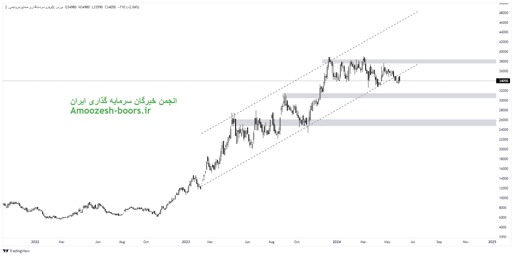 سهم وپترو با شکست خط روند صعودی، اصلاح خود را تا ناحیه حمایتی 31000 ریال ادامه خواهد داد لذا در صورت ایجاد تقاضا در کلیت بازار و شکست مقاومت ناحیه ۳۸۰۰۰ ریال، حرکت صعودی سهم وپترو تا مقاومت ناحیه 50000 ریال نیز ادامه خواهد داشت. همچنین در صورت از دست رفتن حمایت ناحیه ۳۱۰۰۰ ریال نزدیکترین حمایت به سهم پترو ناحیه ۲۵۰۰۰ ریال در نظر گرفته خواهد شد.