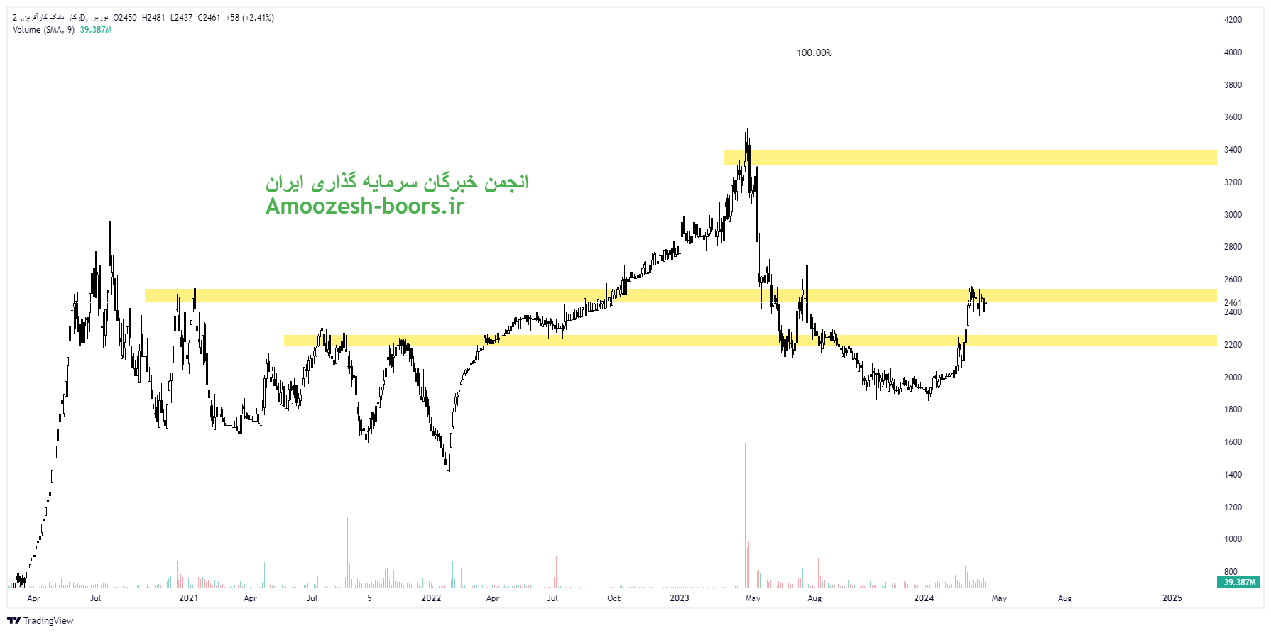 قیمت سهام بانک کارآفرین با برخورد به مقاومت ناحیه ۲۵۰۰ ریال وارد اصلاح شده و نزدیکترین حمایت به سهم ناحیه ۲۲۰۰ ریال در نظر گرفته خواهد شد. همچنین در صورت ایجاد تقاضا از ناحیه حمایتی مذکور مهمترین مقاومت سهم و کار در مسیر صعودی ناحیه ۳۴۰۰ ریال در نظر گرفته خواهد شد.