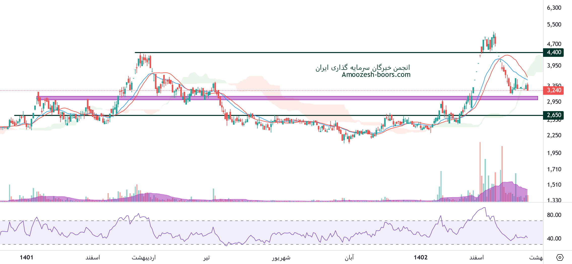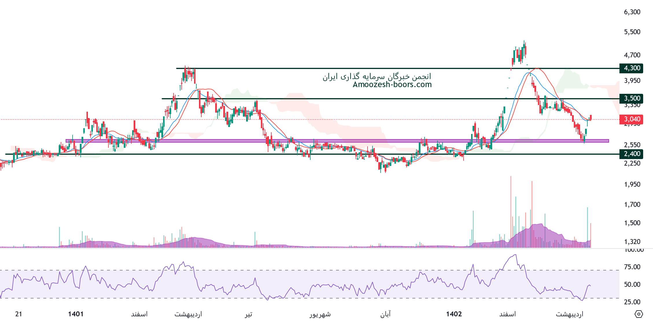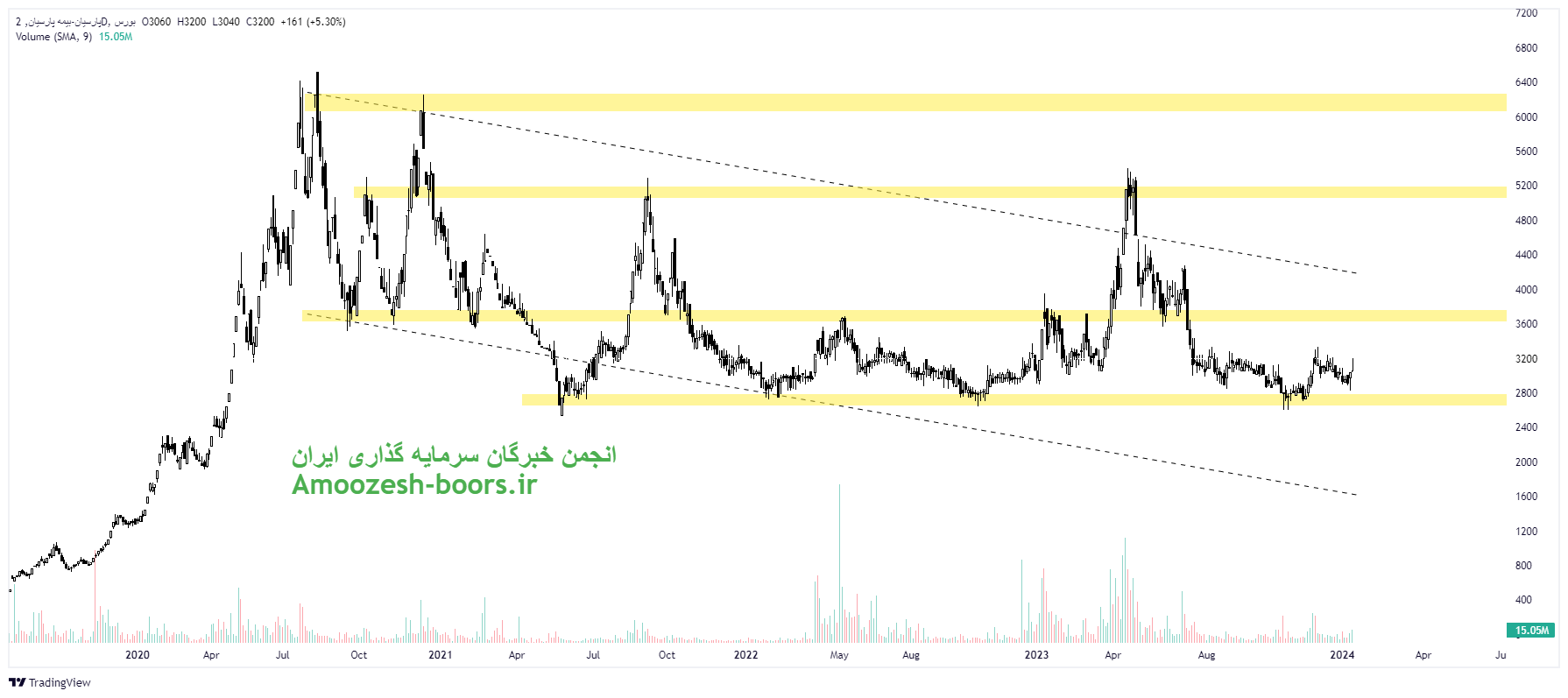 قیمت نماد پارسیان به سطح حمایتی 3000 ریال واکنش مثبت نشان داده، در صورت حفظ این محدوده حمایتی و تثبیت قیمت در این منطقه، حرکت پارسیان به ترتیب تا 3700 و 5400 ریال دور از ذهن نخواهد بود، همچنین در صورت از دست رفتن محدوده حمایتی ذکر شده، حمایت های بعدی سهم 2700 و 2400 ریال در نظر گرفته خواهند شد، در صورت تمایل به ورود به حد ضرر پایبند باشید و مدیریت سرمایه را رعایت نمایید.