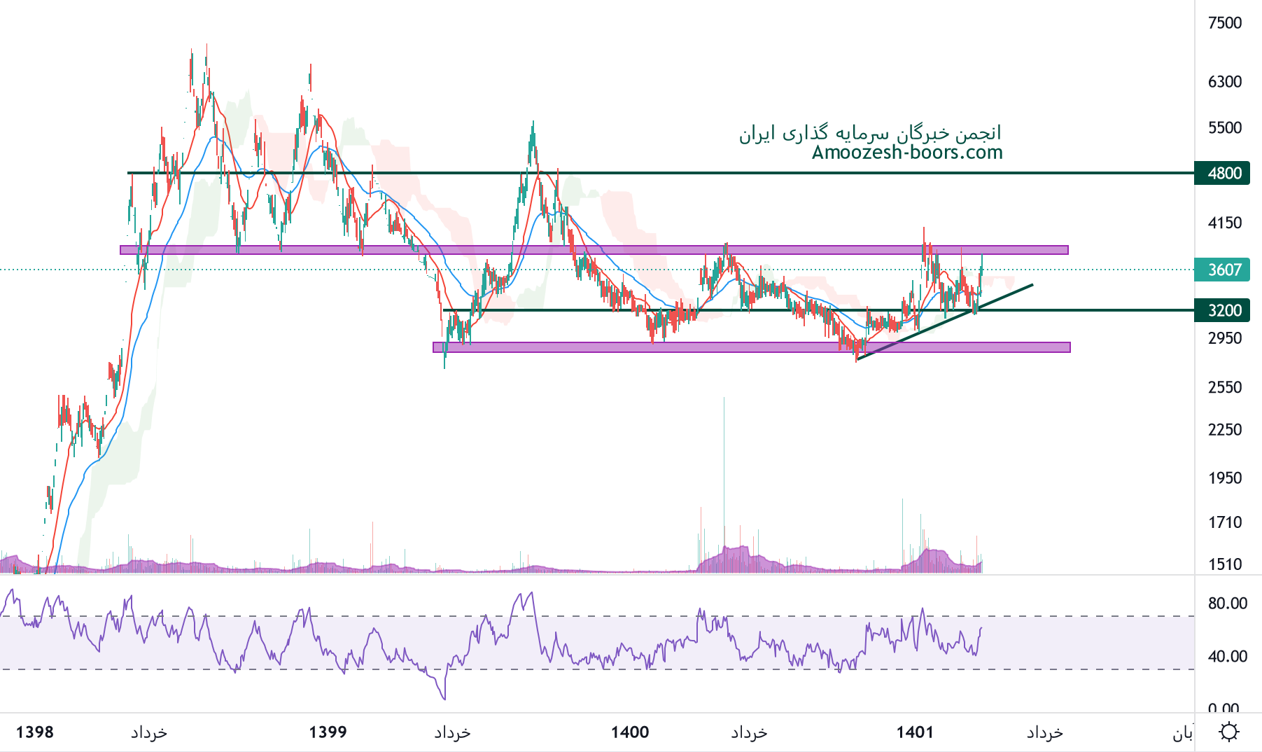 نماد پارسیان در محدوده مقاومتی حساس در قیمت 3800 ریال قرار گرفته، در صورت ادامه دار شدن فشار تقاضاو عبور از این محدوده، حرکت سهم تا 4800 ریال دور از ذهن نخواهد بود، همچنین در صورت ورود سهم پارسیان به فاز اصلاحی، اولین حمایت سهم 3500 ریال و بعد از آن 3200 ریال ارزیابی میگردند.