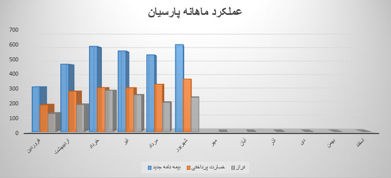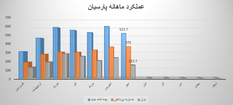 نماد پارسیان (شرکت بیمه پارسیان) طی عملکرد 1 ماهه منتهی به 1401/06/31 از محل فروش حق بیمه 6,046,467 میلیون ریال درآمد داشته که نسبت به عملکرد 1 ماهه مشابه سال قبل 32% و نسبت به ماه قبل 13 درصد افزایش داشته داشته است. همچنین شرکت در شهریور ماه معادل مبلغ 365.8 میلیارد تومان بعنوان خسارت پرداختی شناسایی نموده که این رقم نیز نسبت به ماه گذشته رشد 11 درصدی داشته است . پارسیان در این ماه تراز مثبت %65 را ثبت نموده است.